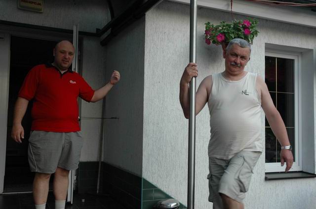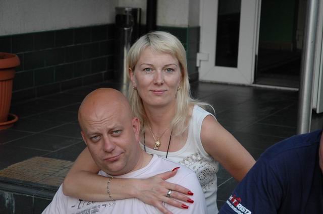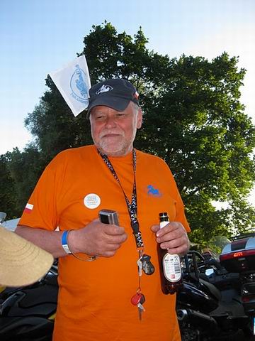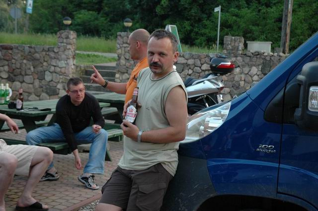 Kiedy nacieszyliśmy oko zabytkami Berlina czas było wracać do Mahlow i kontynuować zlot. Po przybyciu na miejsce rozpoczęliśmy dwie niezależne biesiady. Jedna toczyła się pod dachem kempingowego centrum sanitarnego, a druga tuż obok na placu boju… tzn. placu zlotu ;-). Loteria fantowa ruszyła po raz kolejny… tym razem z pewna nieśmiałością, by po krótkiej chwili ponownie zakończyć swoją działalność. Powód? Siemik wyszperał wszystkie zaskórniaki i nie dał się odgonić od paśnika. Ostatnie nagrody rozgrabione zostały w trybie ekspresowym. W tym samym czasie na trawiasty parkiet wkroczył Worlan, który po obtańcowaniu kilku osobników (różnych narodowości- płeć miała znaczenie drugorzędne) zakończył popisy w szaleńczych uściskach z Orzechem. Wcale nie gorzej wywijał Nosek… aż mu dym z podeszwy leciał. Taniec z Gwiazdami mógłby się od Was uczyć chłopaki! Zresztą co tu dużo mówić- wszyscy tańczyli i bawili się … dopóki siły nie zbrakło ;-).