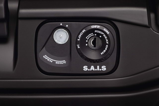 …a tutaj naprawdę nie ma wstydu. Przekręcamy kluczyk w stacyjce by dostać się do głównego przedziału bagażowego a tam aż 62 litry w równomiernej i łatwo pakowalnej kubaturze. W praktyce mieszczą się tam dowolnie ułożone dwa kaski integralne i jeszcze sporo więcej po bokach oraz nad nimi, tak więc upychalność pod kanapą nie musi się wiązać z naszą kreatywnością. Jakby nie włożyć kanapa i tak się zamknie. Dodając do tego świetnie pomyślane podświetlenie schowka montowane w dolnej części siedziska (podobnie jak w An 650 oraz An 400 K3- K6), które bardzo dobrze oświetla przedział bagażowy.. a do tego sprytnie pomyślane dwa małe schowki w bocznych ściankach (w jednym znajduje się zestaw kluczy). mmhhh… nasza radość sięga zenitu. Jest to wyraźny wzór godny naśladowania dla innych producentów dużych skuterów.