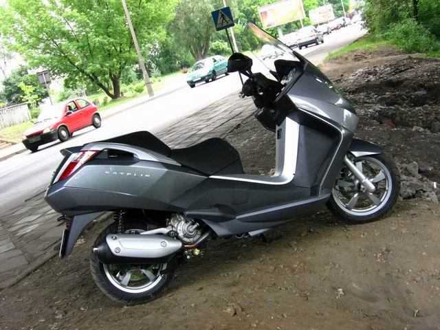 Czy Peugeot zrobił właściwe posunięcie łącząc swe siły z Piaggio? Chyba tak. W końcu rama Satelisa bazuje na znanej i sprawdzonej konkstrukcji modelu Piaggio X9, jednak została delikatnie zmodyfikowana. Na pewno na pochwałę zasługuje montaż w Satelisie włoskiego Quasara, który idealnie współgra z całością i wydaje się być jednostką optymalną. Dobra jakość wykonania, ciekawa stylistyka, bardzo dobre osiągi nieokupione wysokim spalaniem a cena zakupu… może nie okazyjna ale do przełknięcia. Warto wspomnieć o dużej uniwersalności tego modelu… To nie jest typowe miejskie toczydło a raczej wygodny kanapowiec, ze sporym bagażnikiem, który sprawdzi się zarówno w trasie jak i w miejskim gąszczu… a co najważniejsze… Satelis to maxi skuter bez znaczących wad i z pewnością nie nudny a tego szuka większość potencjalnych odbiorców…