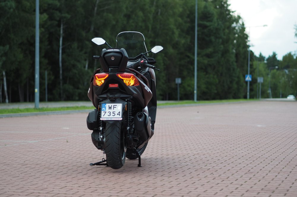 Zawieszenie X-MAXa to klasyczny układ – silnik jest jednocześnie wahaczem. Podwójne amortyzatory z tyłu robią dobrą robotę, niska masa silnika nie powoduje bicia na nierównościach tak jak to miało miejsce np. starym w X-MAXie 400. Zachowanie w zakrętach jest wzorowe, dziury i nierówności są niwelowane w sposób bardzo sprawny. Zawieszenie jest dobrze dopasowane pod względem miękkości, nie tłucze po kręgosłupie ani nie buja. W kwestii zawieszenia byłem bardziej niż zadowolony.