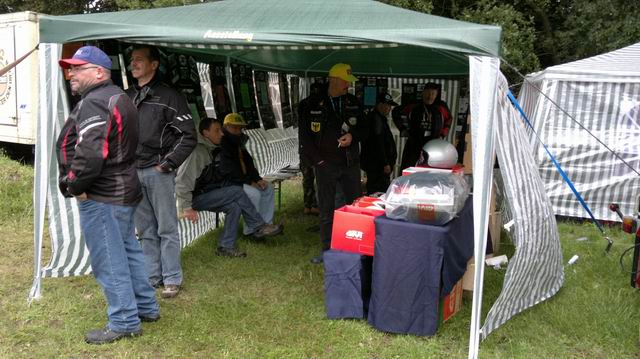 Warto wspomnieć również o naszym Królu lawety, kiedy większość z nas myślała jedynie jak dotrwać do wieczoru w pionie, Siemik załatwił sobie naprawę w pobliskim warsztacie. Kosztowało to 45 ojro ale przynajmniej zwolnił miejsce na lawecie bardziej potrzebującym. Suma sumarum wszystko szło po naszej myśli. U schyłku dnia i mojej percepcji dotarliśmy na aukcję różnych fantów przygotowanych przez HGF. Były kaski, kufry, zestawy słuchawkowe i inne podobne wynalazki przydatne bardziej lub mniej w codziennym użytkowaniu naszych pojazdów. Jakie było moje zdziwienie gdy nagle niechcący jeden z kasków wszedł w moje posiadanie, chciałem się podrapać w głowę, ale niestety prowadzący aukcję uznał to za ofertę – 25 ojro w plecy. Takich osób jak ja było więcej, ciekawe tylko czemu większość fantów wpadło w ręce Burgmanii. Towaru na kartki już nie ma. Półki sklepowe w Polsce uginają się pod dobrodziejstwami zachodu a my już chyba z przyzwyczajenia jesteśmy nastawieni na zakupy.